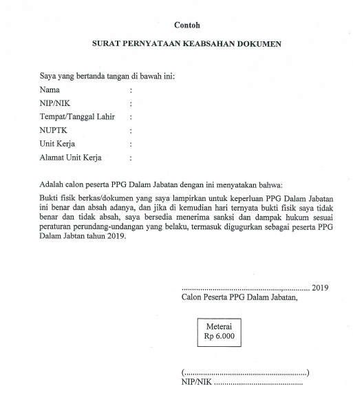 Surat pernyataan yang bertanda tangan dibawah ini : Yang bertanda tangan di bawah ini Download surat pernyataan keabsahan dokumen bagi calon peserta ppg tahun 2019. Data dan seluruh dokumen yang saya gunakan untuk memenuhi persyaratan sebagai mahasiswa di ut adalah benar. Berikut ini adalah sebuah contoh surat pernyataan kebenaran dan keabsahan dokumen lingkungan yang bisa anda jadikan bahan referensi.